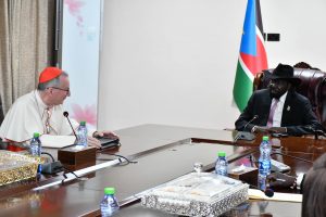 His Eminence also recalled the unprecedented and shocking act of Pope Francis kneeling before the South Sudan leaders to kiss their feet, a gesture of encouragement to accelerate the slow paced peace agreement in 2019. Lastly H.E. Pietro Parolin visited the First Vice President Dr Riak Machar, where they had a discussion on the implementation of the Peace agreement. H.E. Pietro Parolin reiterated and expressed the messages of His Father Pope Francis for reconciliation and unity.Lastly H.E. Pietro Parolin visited the First Vice President Dr Riak Machar, where they had a discussion on the implementation of the Peace agreement. H.E. Pietro Parolin reiterated and expressed the messages of His Father Pope Francis for reconciliation and unity.